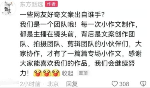 一起“小作文”風(fēng)波,引發(fā)了董宇輝粉絲和東方甄選的博弈。讓董宇輝粉絲與東方甄選“叫板”的起因,是有關(guān)東方甄選天花板級別的文案到底是出自誰手的爭論。